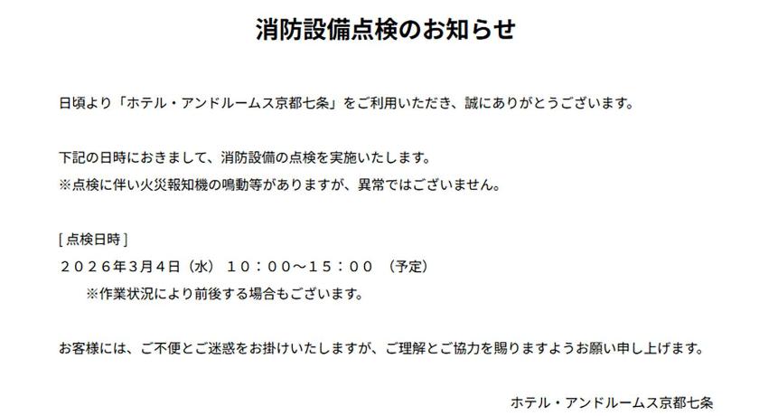 ホテル・アンドルームス京都七条完璧なサービスを提供し、必要な設備がすべて揃っています。当宿泊施設の無料Wi-Fiを利用して、シームレスなコミュニケーションを。 当宿泊施設で提供される交通サービスのおかげで、京都観光がより手軽になります。 長期滞在の場合でも、単に清潔な衣類が必要な場合でも、当宿泊施設が提供するランドリーサービスを利用すれば、大切な旅行着をキレイな状態に保てます。客室での設備・サービスにはルームサービスがあり、くつろいで滞在を満喫することができます。 当宿泊施設は完全禁煙です。喫煙を希望される方には、指定された喫煙ゾーンがあります。当宿泊施設には、快適な眠りに必要なすべての便利な設備が整っております。一部の客室にはエアコンやリネンのサービスが備わっておりますので、快適なご滞在をお楽しみください。 一部の客室にはコーヒーや紅茶を淹れるのに必要なものがすべて揃っているので、のどの渇きを潤すことができます。客室のバスルームには、バスローブ、タオル、ドライヤーを備え付けております。 当宿泊施設内にあるカフェで美味しいコーヒーを味わい、爽やかな朝の喜びを体験しましょう。 宿泊のお客様は昼夜を問わず、自動販売機で軽食を楽しむことができます。ホテル・アンドルームス京都七条には、お客様が楽しめるレクリエーション設備があります。 当宿泊施設内の便利な場所にあるスパ施設で、毎日の疲れを癒しましょう。