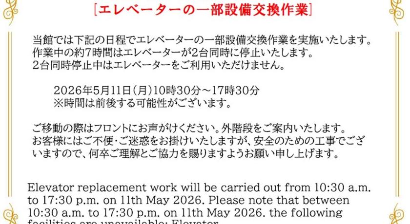 ホテルからの重要なお知らせ