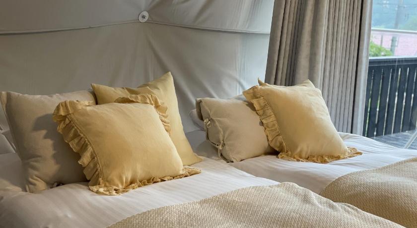デラックスツインルームに4人で泊まりました。2人はエクストラ(寝袋)でしたが、思いの外快適で、貴重な体験ができました!食事のBBQもテント前のバルコニースペースでゆったりと楽しめ、食材も十分な量が提供され、満腹になりました。21時にはかたづけ終えないといけないので、ゆっくりBBQするなら、早めに開始するのがおすすめ。初めてのグランピング、大変満足できました!