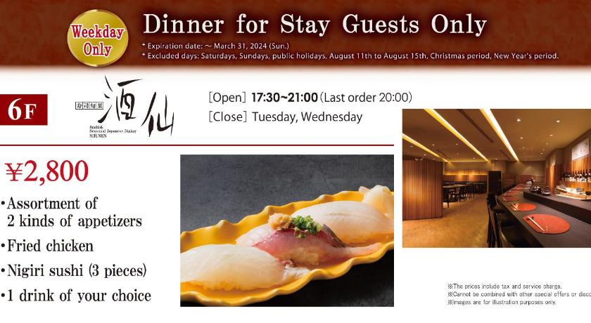 【お子さまの食事】食事付きのプランをご予約された際でも、添い寝で宿泊(無料)のお子さまがお食事希望の場合、別途料金のお支払いが必要となります。
