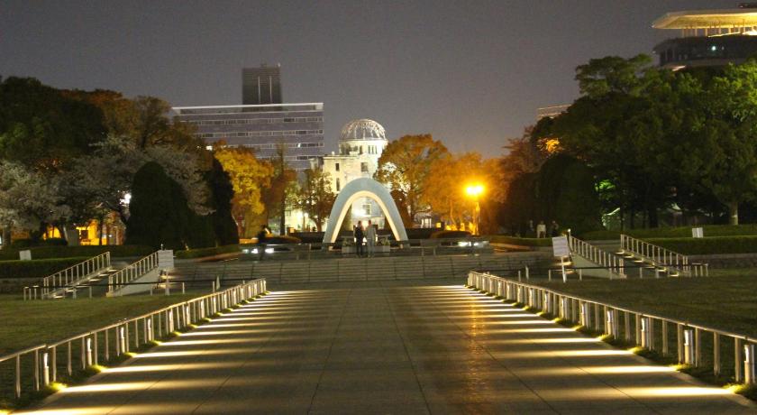 セノタフ(680m),原爆ドーム(760m),原爆の子の像(580m),平和祈念館(700m),平和記念公園(680m),平和の鐘(690m),広島城(1km),広島お好み村(1.39km),広島平和記念公園(700m),広島平和記念資料館(840m),広島平和都市記念碑(680m),縮景園(1.67km)