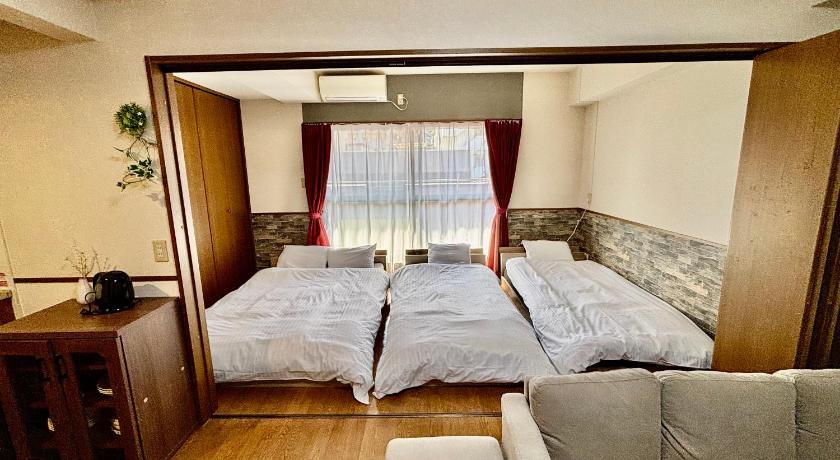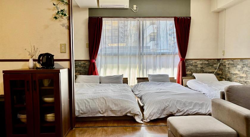 6人で利用しましたがまだ余裕があるくらいの十分広い部屋でした。風呂にはシャンプー、コンディショナー、ボディーソープがあり、キッチンには洗剤、食器、鍋、箸などが用意されていました。ベットは少し硬いかなという感想ですが全然寝れました。コンビニも近くに何件かあり、路面電車の駅も近くにあり立地もかなり良いです。