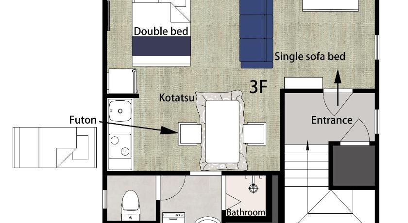 ダブルベッド 1台 & ソファーベッド 1台 & 布団 1組
