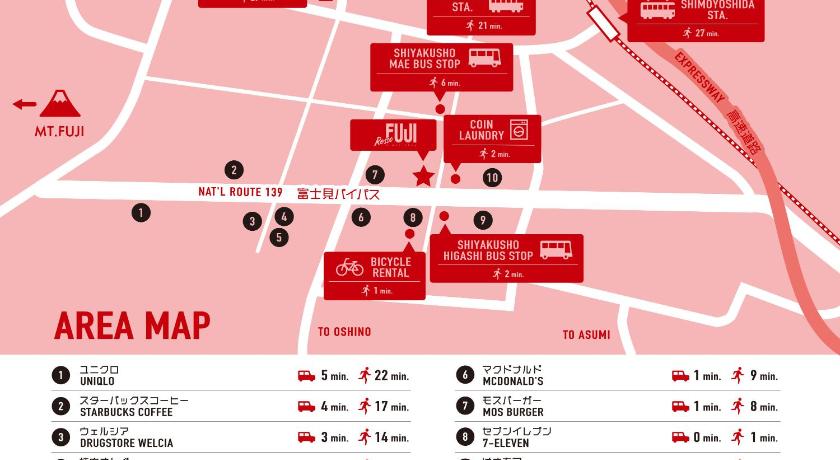 ふじやまビール(3.04km),Beisia(1.69km),MaxValu(880m),Selva(690m),下吉田(1.56km),北口本宮冨士浅間神社(2.35km),富士五湖(480m),富士山登山用品レンタルショップLaMont(2.73km),富士山駅(1.45km),富士急ハイランド トーマスランド(3.02km),富士浅間神社(1.93km),小室浅間神社(下浅間)(1.28km),展望台(1.98km),御師住宅(旧外川家住宅)(1.49km),新世界乾杯通り(1.09km),月江寺通り(1.1km),葭池温泉前(1.84km),金鳥居(1.24km)