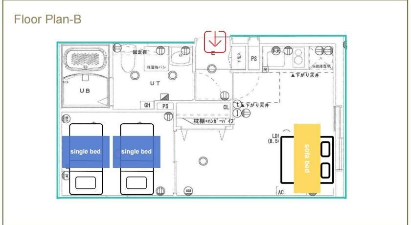 ダブルベッド 1台 & ソファーベッド 1台
