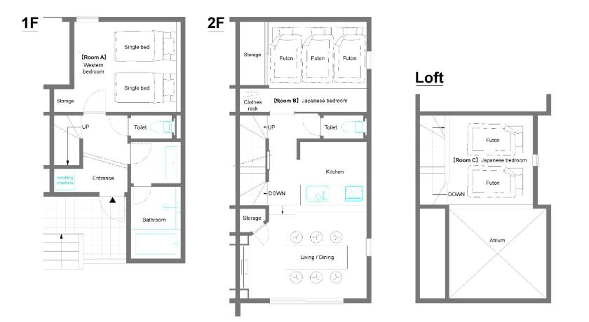 シングルベッド 2台 & 布団 5組