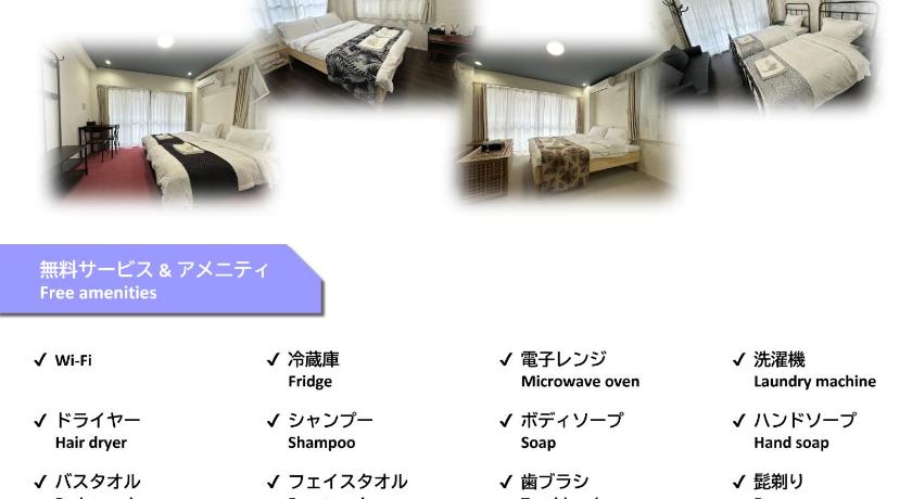 24時間フロント対応,チェックイン/アウト(エクスプレス),トイレタリー,衣類乾燥機,リネン・衣類の湯洗い,洗濯機