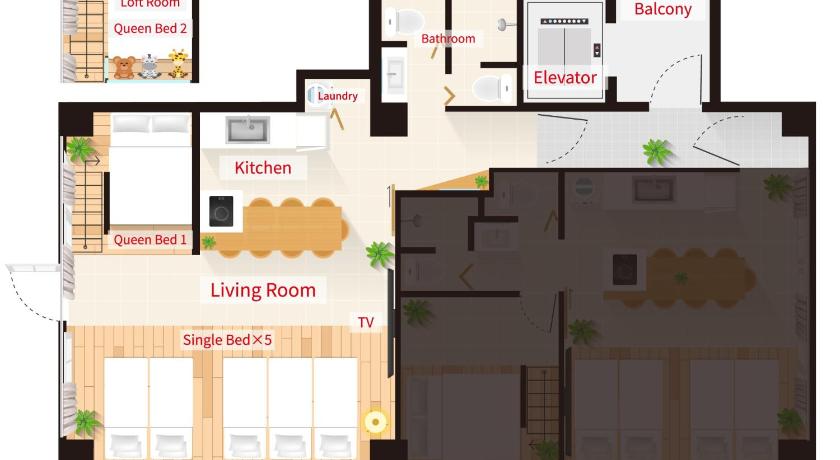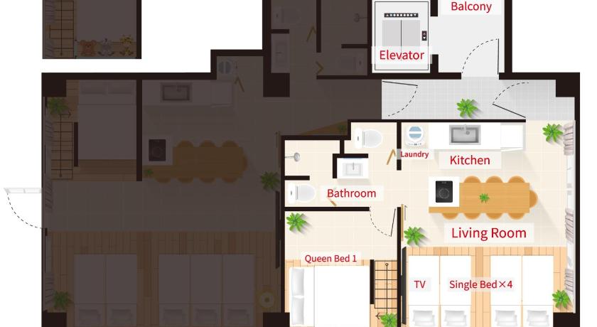 シングルベッド 5台 & クイーンベッド 2台